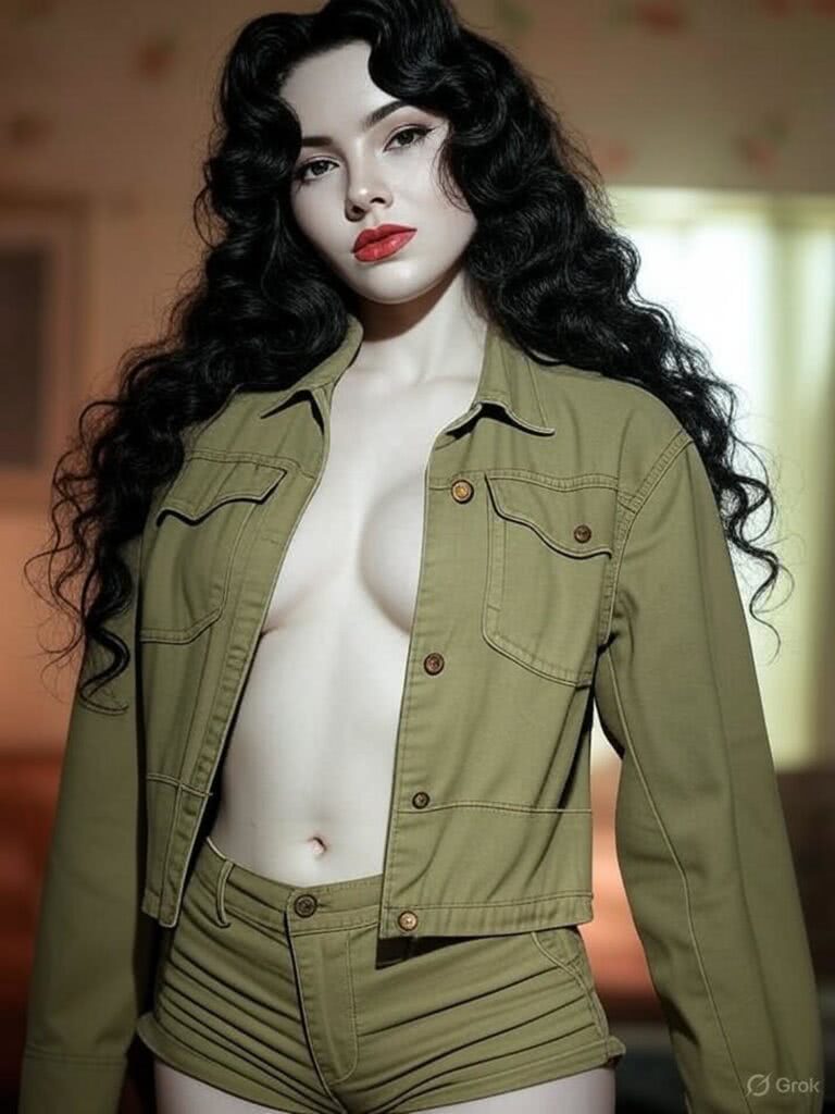 Ten styl to cyfrowa oda do uwodzenia. Te dziewczyny w khaki strojach, inspirowane zdjęciami, łączą nostalgię z nowoczesną erotyka, gdzie kształty piersi i subtelne napięcie tworzą magnetyczną aurę.